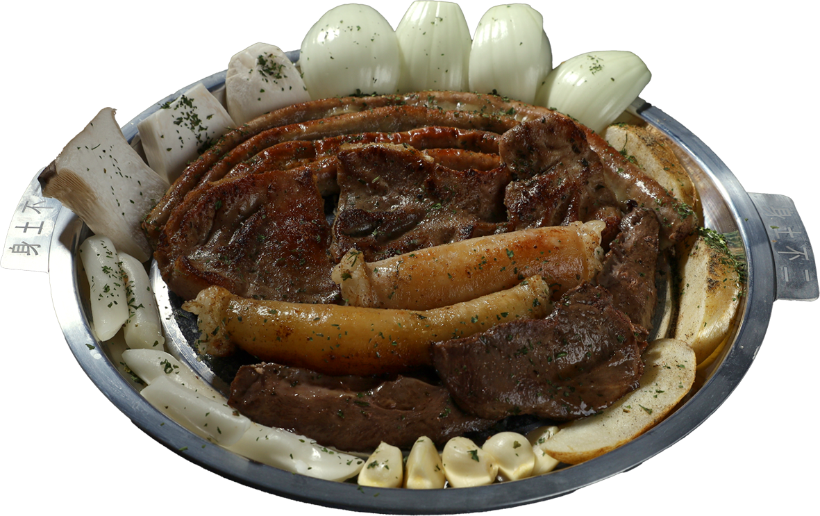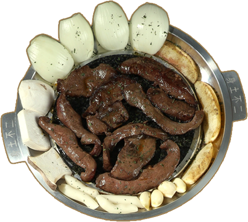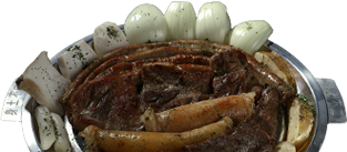 초벌된 고기를 돌판에 올려 특제