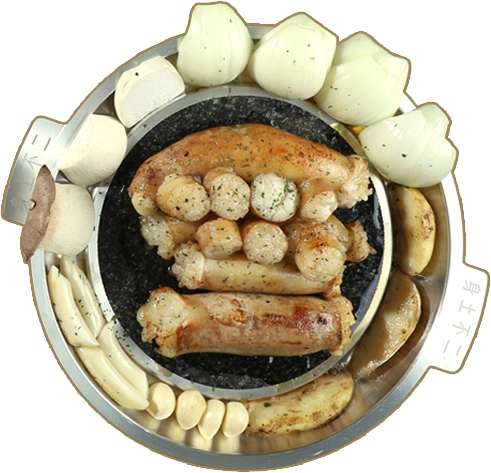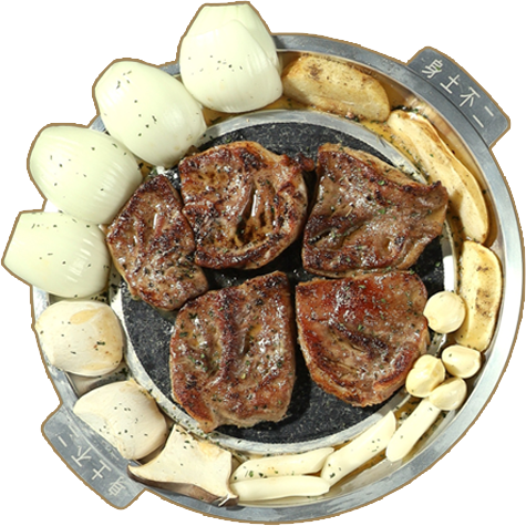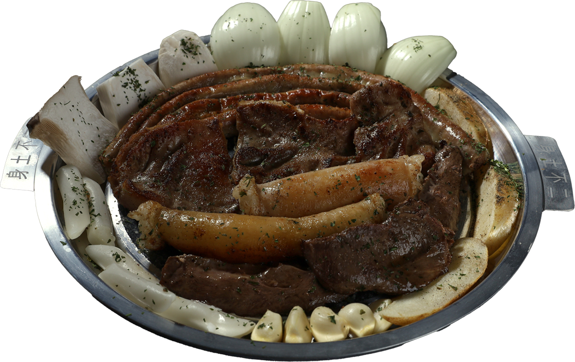 초벌된 고기를 돌판에 올려 특제