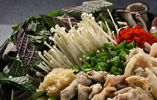 곱창, 소막창, 소대창, 염통, 손질된 야채,