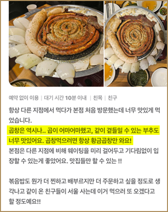 이러한 차별화된 품질 덕분에, 경쟁사들이 쉽게 따라올 수 없는 곱창을